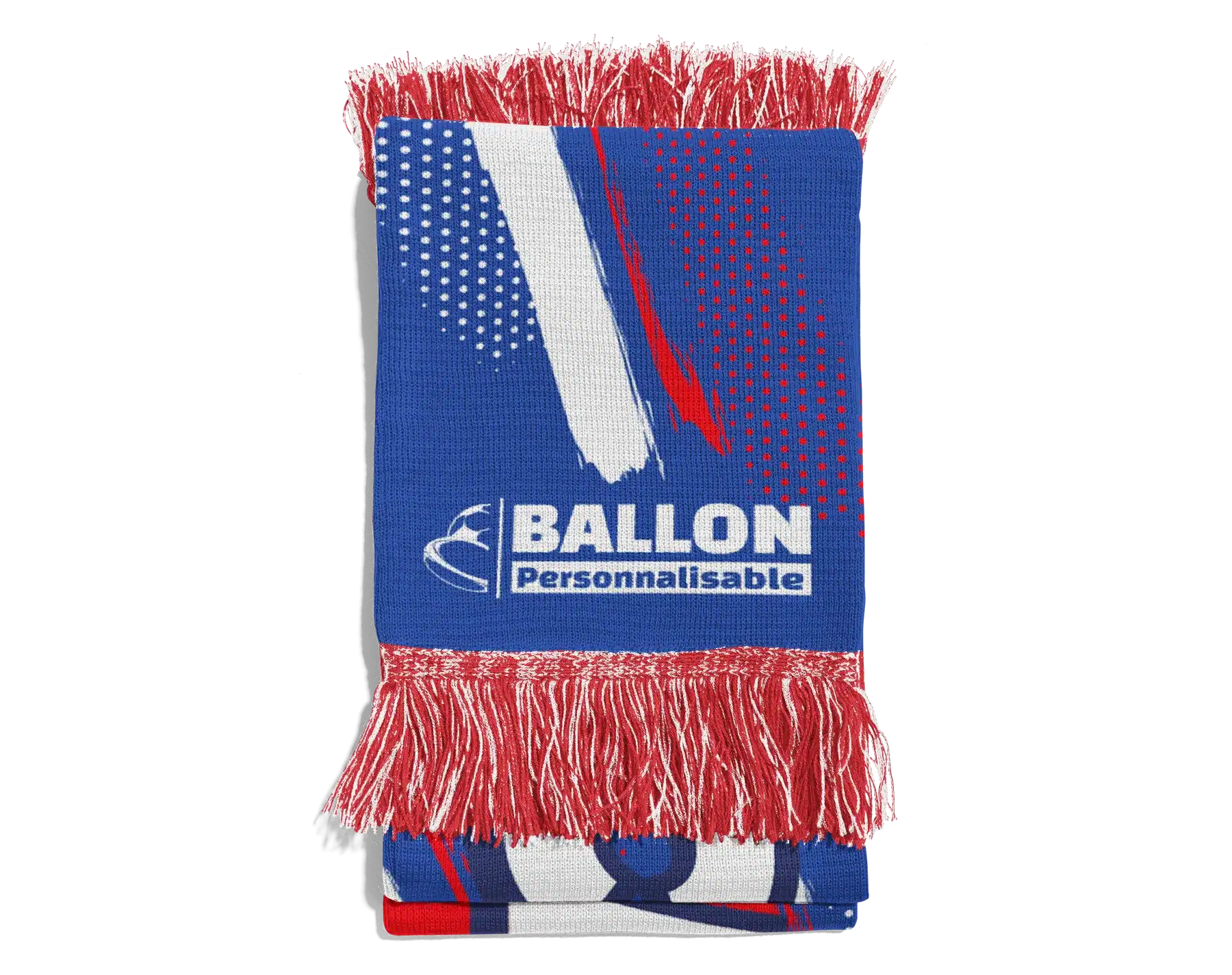 Écharpe tissée HD avec franges personnalisées (fabrication européenne). Visuel réalisé par tissage jusqu’à 5 couleurs unique au recto.